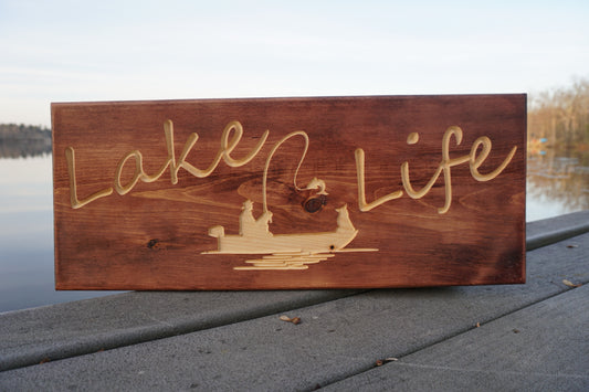 Lake Life Sign with Fisherman