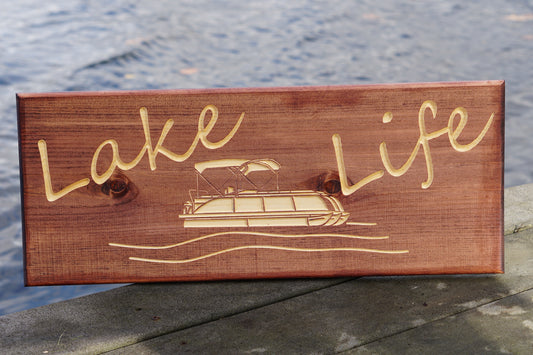 Lake Life Sign with Pontoon Boat